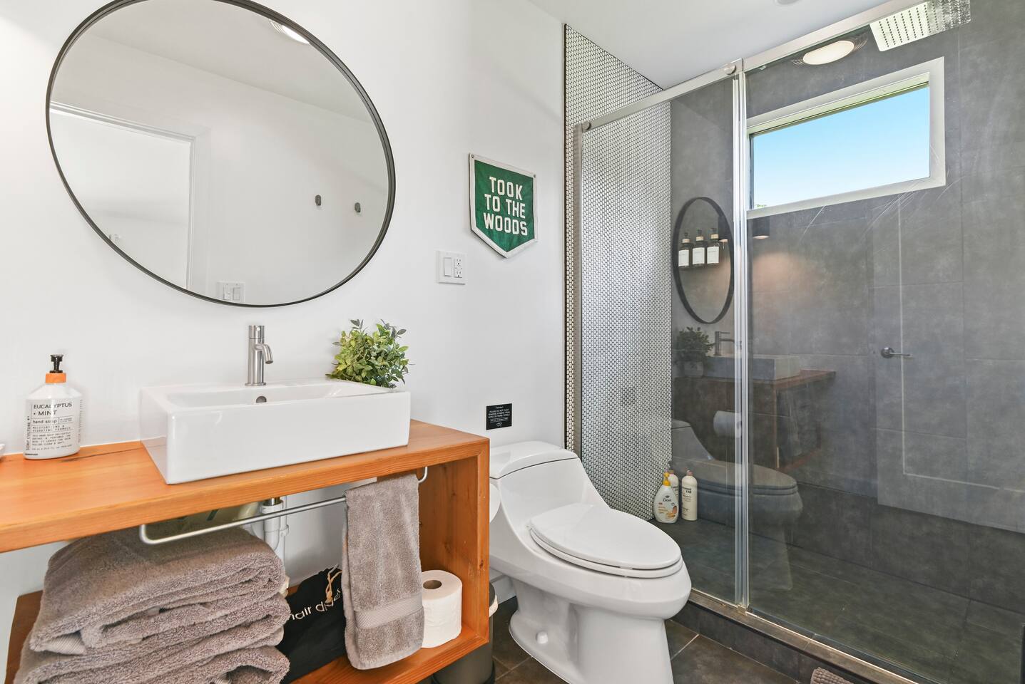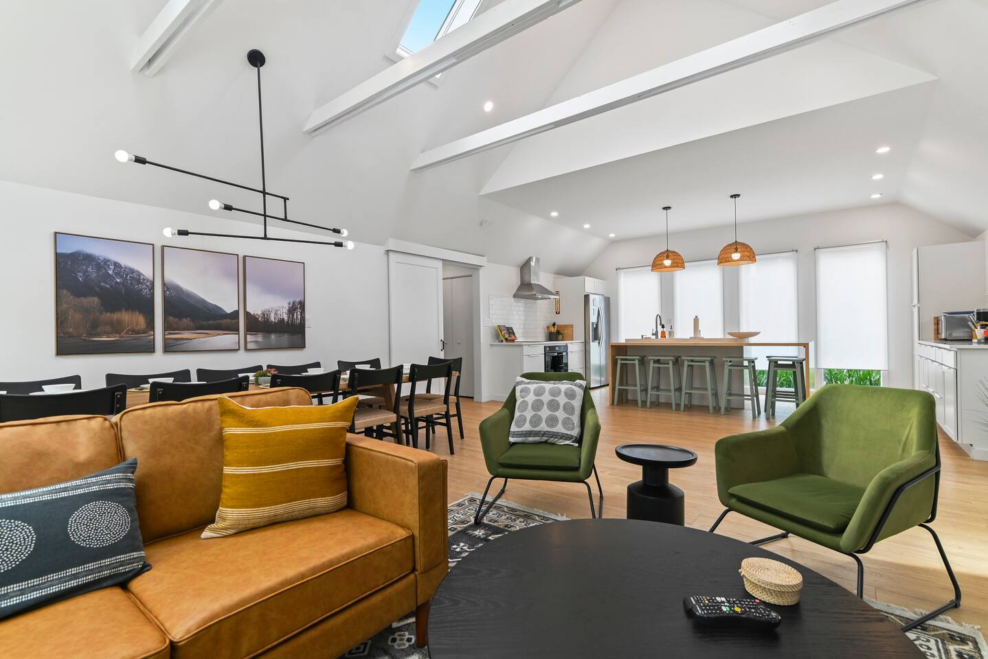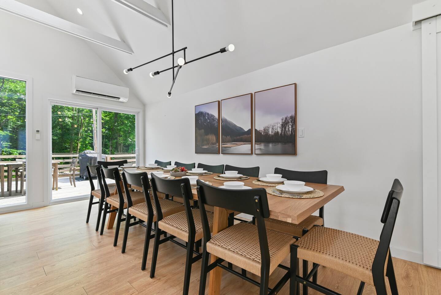 Please take a tour through this breathtaking oasis to familiarize yourself with all the comforts and amenities it offers. The best place to start is the majestic open-concept design living, kitchen and dining area. The home's heartbeat features an entertaining living room with a fully equipped kitchen and an inviting dining area. Warm sunlight touches the elegant décor through windows and skylights, reinforcing the luxurious style under the soaring high ceilings. You can quickly change your settings by stepping into the gorgeous backyard. It offers a private haven with a luxurious hot tub, BBQ grill, magical fire pit, and relaxing hammocks, perfect for romantic stargazing. When you've had enough of the great outdoors, you'll be able to retreat to the game room to have hours of fun playing classic arcade games or have a friendly tournament to decide who takes the crown of the vacation foosball or air hockey champ. Contemporary design and comforts are present in three bedrooms that will have you sleeping like royalty, so you feel rested for whatever you have planned tomorrow. ★ LIVING ROOM ★ The home's focal point is ideal for a fun family gathering. Sit back and relax by the fireplace, put your favorite song on the record player, play it yourself on the guitar, or discuss your plans for days to come. ✔ Comfy Sofa Chairs with Blankets ✔ Gas Fireplace ✔ Record Player ✔ Board Games ✔ Access to the Backyard Sitting by the fire with your loved ones is a gratifying and magical experience, but where's the TV? Worry not, as there are smart TVs in both the living room and game room! ✔ Comfortable L-Shaped Sofa with Pillows & Blankets ✔ 55" Smart TV with Youtube TV, Disney+, Hulu, Netflix ✔ Bluetooth Sound Systems ✔ Stylish Coffee Tables ★ KITCHEN & DINING ★ The fully equipped kitchen comprises of ample cabinetry, spacious countertops, and stainless-steel appliances that allow for the effortless and fun preparation of your favorite meals. ✔ Microwave ✔ Stove ✔ Oven ✔ Toaster ✔ Blender ✔ Coffee Makers (Keurig, French Press, Drip Coffee) ✔ Double-Door Refrigerator/Freezer ✔ Dishwasher ✔ Sink - Hot & Cold Water ✔ Trays ✔ Glasses ✔ Silverware ✔ Pots & Pans ✔ Children's Plates, Bowls, & Silverware Serve those tasty homemade meals and let the smells invite everyone to the dining table. The lovely kitchen island is perfect for a delicious breakfast or a snack. ✔ Dining Table with Seating for 12 ✔ Kitchen Island with Seating for 4 ★ SLEEPING ARRANGEMENTS – 6 BEDROOMS★ Five comfortable bedrooms + the loft bedroom make you feel like you are sleeping on clouds while providing maximum convenience through added amenities. ♛ Master Bedroom: King-Size Bed, Ensuite Bathroom ♛ Bedroom 2: King-Size Bed, Ensuite Bathroom ♛ Bedroom 3: Queen-Size Bed, Ensuite Bathroom ♛ Bedroom 4: Queen-Size Bed ♛ Bedroom 5: Queen-Size Bed ♛ Bedroom 6 (Loft): Two Futons that fold into full-size beds All bedrooms offer a similar set of amenities: ✔ Premium Pillows, Linens, and Sheets ✔ Closets with Hangers and Shelves (Walk-In in Master) ✔ Night Stands with Reading Lamps ★ BATHROOMS ★ The homes features 5 full bathrooms and one half bath. All are stocked with essential toiletries, so you don't need to worry about overpacking. ✔ Walk-In Showers ✔ Vanities ✔ Mirrors ✔ Toilets ✔ Towels ✔ Hair Dryers ✔ Essential Toiletries ★ ARCADE ★ Come to the entertaining ground level to discover numerous relaxing and entertaining amenities. Be careful, though. You'll quickly lose track of time in this fun space! ✔ Arcade Games ✔ Foosball Table ✔ Smart TV with Netflix, Disney+ ✔ Snug Sofa and Chairs ★ FAMILY LOFT ★ Kids or voracious readers will love the loft space above the game room, with many books available for anyone from small children to adults. Nestle up in one of the bean bags and read your favorite book or enjoy some building blocks games with your children. There are 2 additional futons that fold flat into full-size beds, with sheets available in the laundry room. ★ OUTDOOR ★ Enjoy the majestic outdoor ambiance by stepping out in the backyard from the living room, offering a private setting where you can relax in the hot tub, share stories by the fire pit, prepare tasty BBQ, and gaze at the spectacular starry sky while lying on the lounge chairs hammocks. It doesn't get much better than this! ✔ 6-Person Hot Tub ✔ Double Stargazing Hammocks ✔ Fire Pit with Benches ✔ Hanging Egg Chair with String Lights ✔ Teakwood Dining Table ✔ Kids’ Playset w/ swing, slide ✔ Basketball Hoop ✔ Volleyball Net ✔ Soccer goals ✔ Chaise Loungers ✔ BBQ Grill ✔ Upper Patio with a Seating Area ✔ Cornhole ✔ Kan-Jam ✔ Bocce Ball ✔ Glow-in-the-dark pong ✔ Giant Jenga & Giant Connect Four Spend a memorable vacation in this breathtaking mountain home where modern amenities and stylish décor mix with the highest comforts