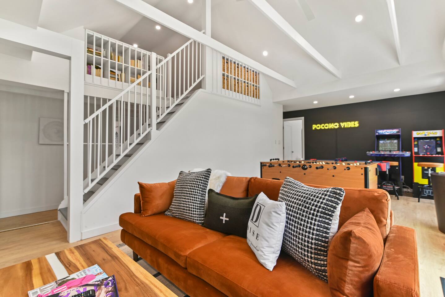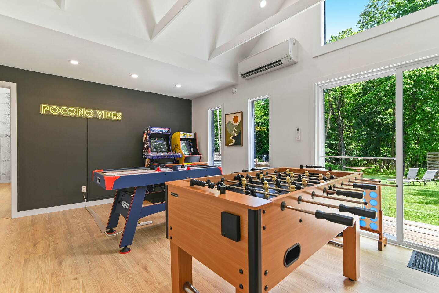 Welcome to Pocono Vibes! A luxurious 5BR, 5.5Bath home near Camelback Ski Resort, Aquatopia Water Park, Mount Airy Casino, outlets (100+ stores), Pocono Raceway & more! Gaze starry skies from hammocks, unwind in the hot tub, or hike the majestic Delaware Water Gap. Kids will love the many games & outdoor space! ✔ 5 Comfy BRs+Loft BR ✔ 2 King Beds ✔ Game Room (Arcade, Foosball, Air Hockey) ✔ Backyard (Hot Tub,BBQ,Games,Hammocks, Fire Pit) ✔ Smart TVs ✔ Fast WiFi ✔ Free Parking ✔ Lots of games